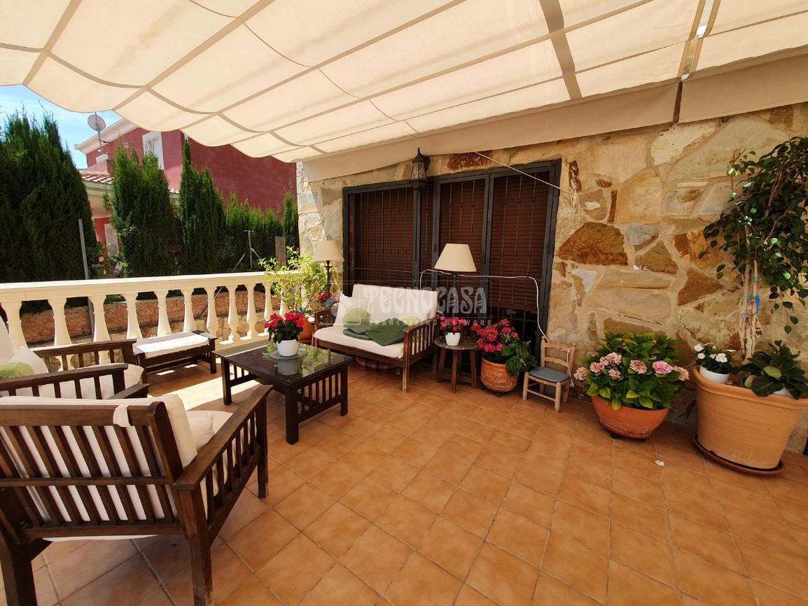 En la PLANTA BAJA tenemos acceso a un garaje que hará tu vida cotidiana mucho mas cómoda, la casa esta rodeada de un terreno con jardines, arboles frutales, y palmeras. Todas las estancias, garantiza comodidad durante todo el año.